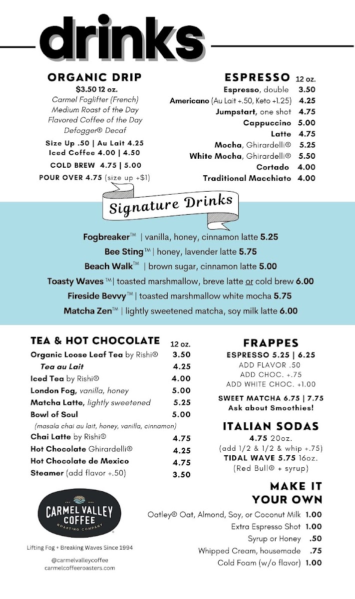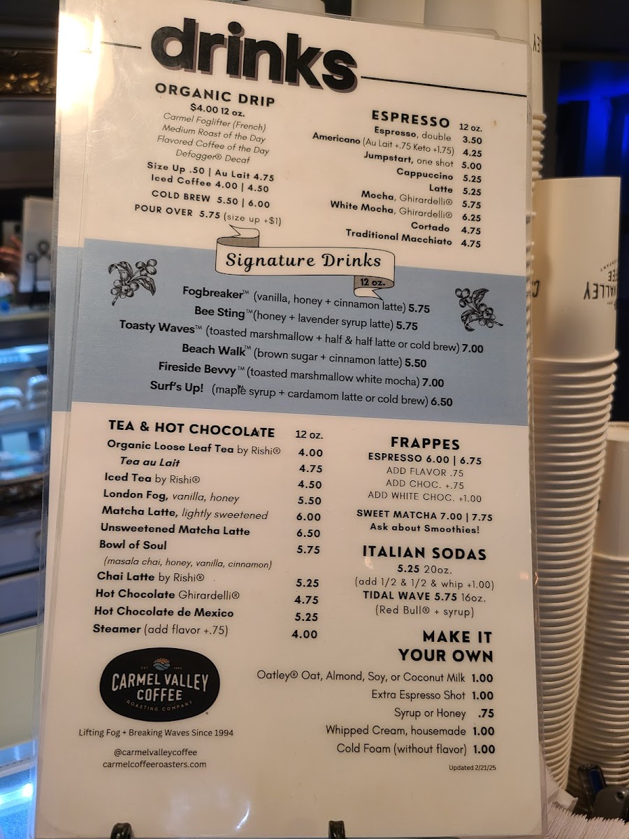 Welcome to Carmel Valley Coffee Roasting Co, a hidden gem located on Ocean Ave in the picturesque town of Carmel-By-The-Sea. If you're seeking a delightful coffee experience without the long lines, this is your spot. Patrons rave about the cold brew, celebrated for its rich flavor and smooth drinkability, making it a favorite among locals.